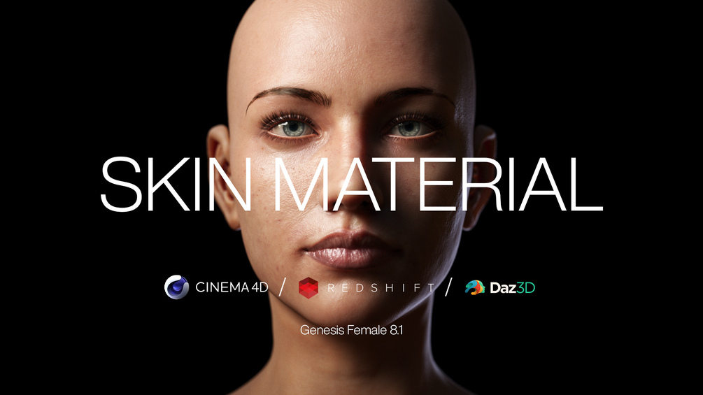Skin Textures for Daz3D Genesis 8.1 Female, Setup with Redshift Render Material in Cinema 4D